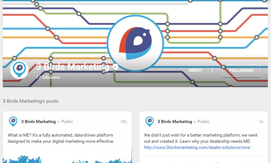 While G+ once followed a model similar to Facebook with a clear distinction between profiles and pages, the platform is now moving closer to a Twitter model where there is a bit more ambiguity as to whether you are viewing a business page or a personal profile. Brand pages look nearly identical to personal profiles other than the information presented in the “About” window.