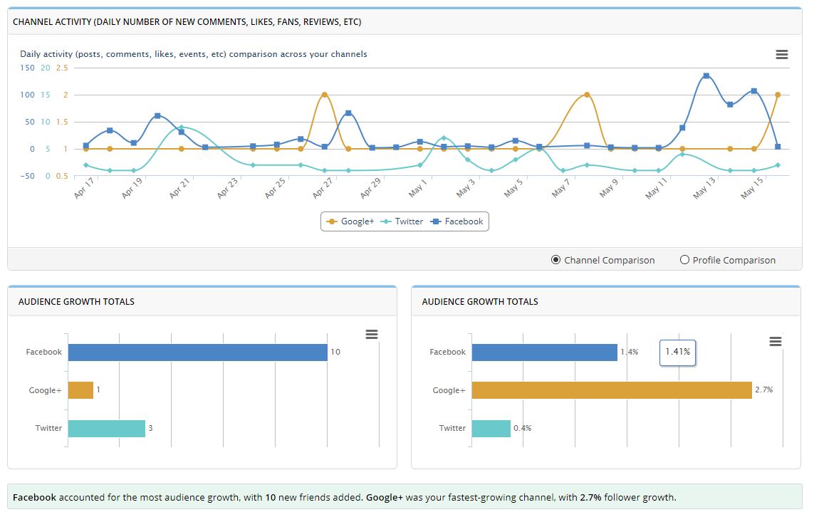 Show some ROI by looking at the reporting within each social network, and take some time to familiarize yourself with the different metrics. You can also look at channel metrics, see an overall picture of your social media health, and delve into specific reporting details through the 3 Birds Social Media App within the Wire.