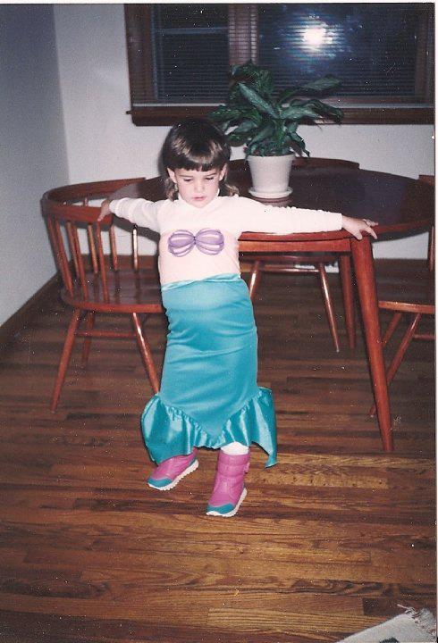Alice, Creative: "When I was 6 I was Ariel from The Little Mermaid because you all know it's my dream to be a ginger. But I also lived in Ohio at the time and it was a particularly chilly evening so my mermaid ensemble was complimented with snow boots and a turtleneck."