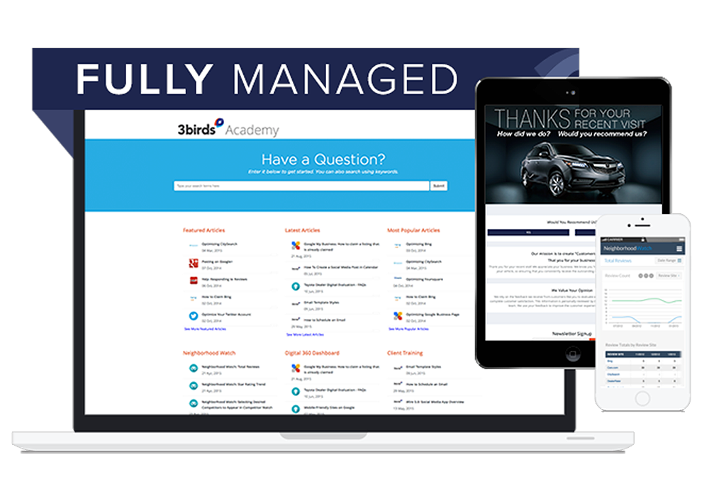 Talk to 3 Birds, a preferred provider of social media and reputation management solutions to Honda and Acura dealers, about the right solution for your dealership.