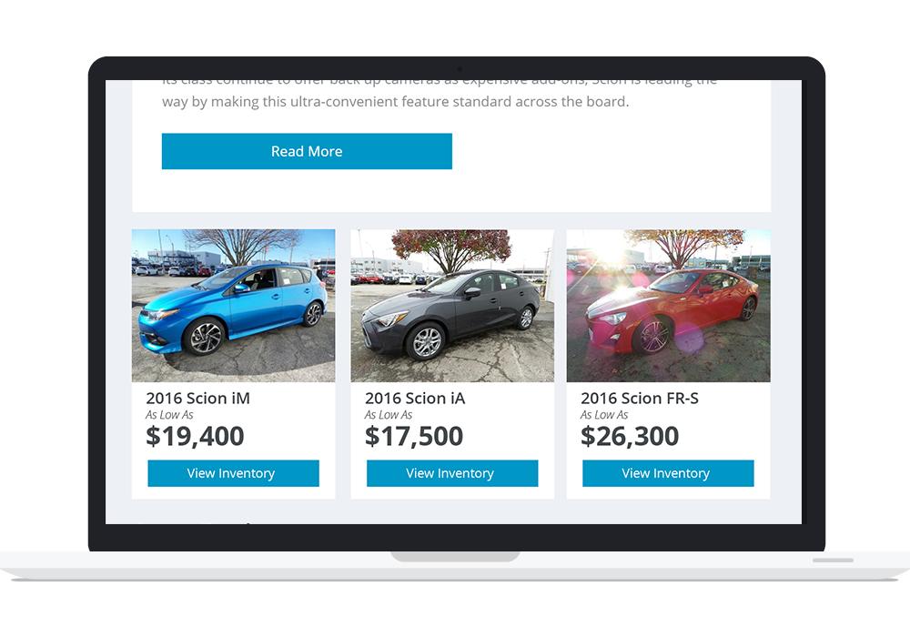Sell down your Scion inventory and smoothly transition your Scion customers to your Toyota store with a newsletter that integrates your live inventory.